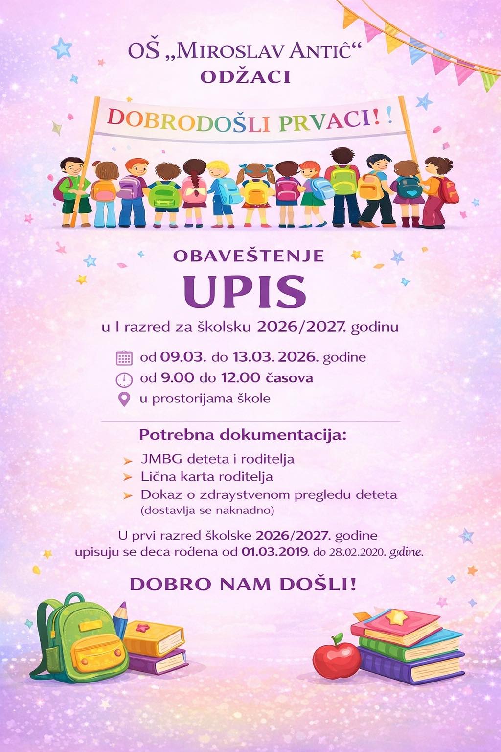 Обавештење о упису првака